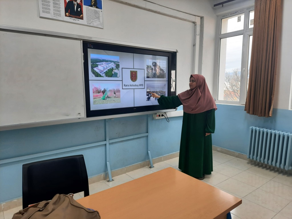 12. sınıf öğrencilerine HEDEF YKS 2024 projesi kapsamında okul psikolojik danışmanı/rehber öğretmeni Ayşe GERMAN tarafından başvurusu başlayan Milli Savunma Üniversitesi tanıtımı yapıldı.