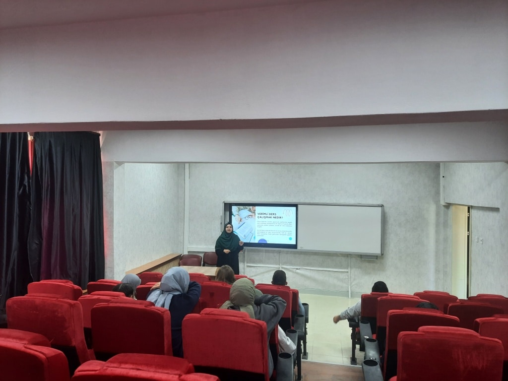 Hedef YKS 2025 projesi kapsamında okulumuz rehber öğretmeni Ayşe GERMAN tarafından 12. sınıf öğrencilerine "Verimli Ders Çalışma Teknikleri" semineri verilmiştir.