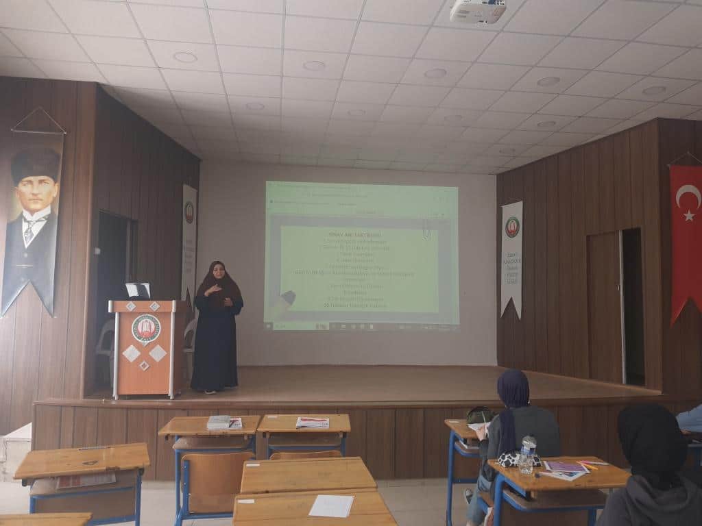 Hedef YKS 2024 projesi kapsamında okulumuz rehber öğretmeni/psikolojik danışman Ayşe GERMAN tarafından 12. sınıf öğrencilerine "YKS Sınav Stratejileri" semineri verilmiştir.