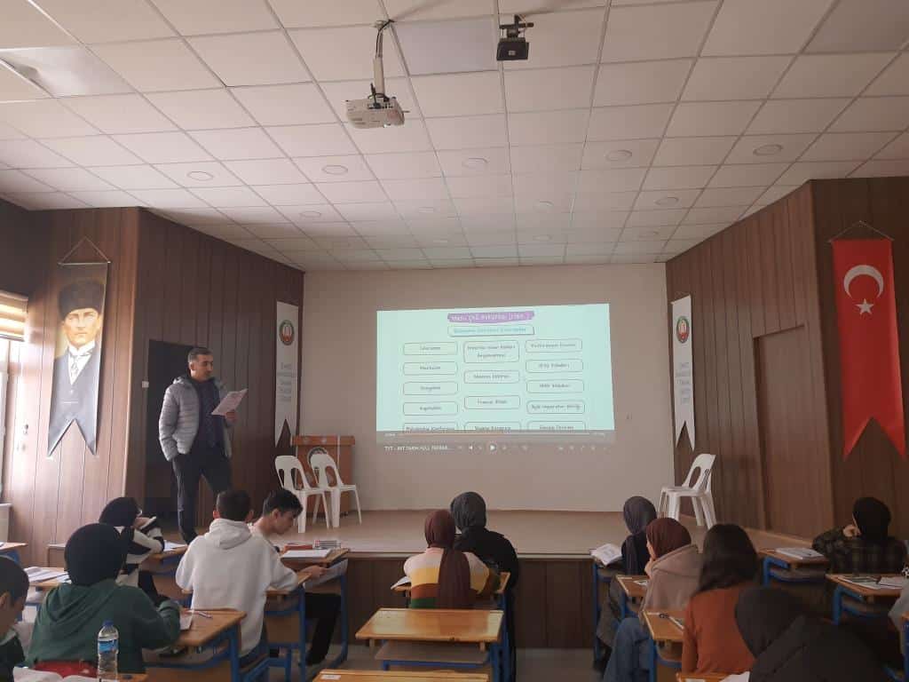 HEDEF YKS 2024 projesi kapsamında 12. sınıf öğrencilerim ile YKS tarih dersi konu tekrarları yapıldı. Okul Müdürümüz Ramazan ERDİNÇ rehberliğinde ve öğretmenlerimiz gözetiminde öğrencilrimize YKS Tarih konularının tekrar videoları izletildi ve önemli kısımlar üzerinde durularak konu tekrarları yapıldı.